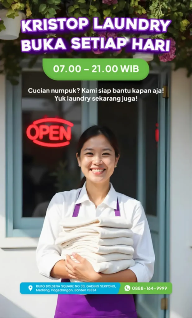 Laundry Kristop menjadi pilihan terpercaya bagi keluarga, mahasiswa, pekerja kantoran, hingga bisnis yang membutuhkan layanan cepat